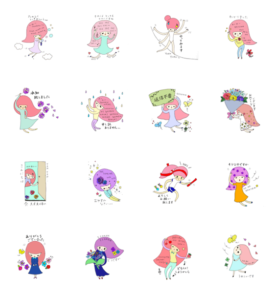 嬉しくてスキップしたくなるような、思わずクスッとしちゃうような、女の子の毎日のスタンプです。
