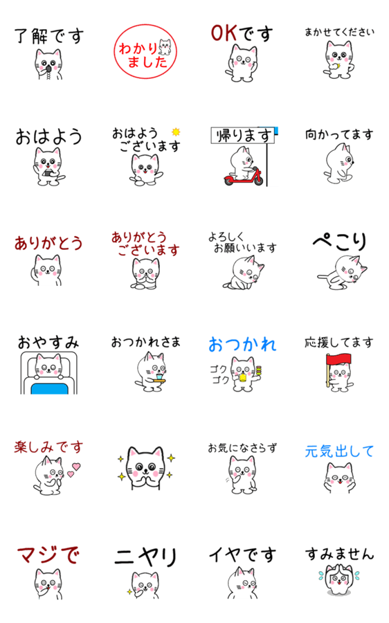 動く白いねこのスタンプの第5弾です。