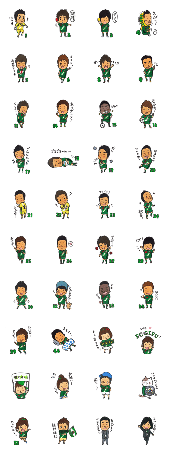 サッカーJリーグ・FC岐阜の公式スタンプです。2015シーズン所属選手、スタッフ、ファン・サポーターが登場!あなたの想いをスタンプで伝えよう。