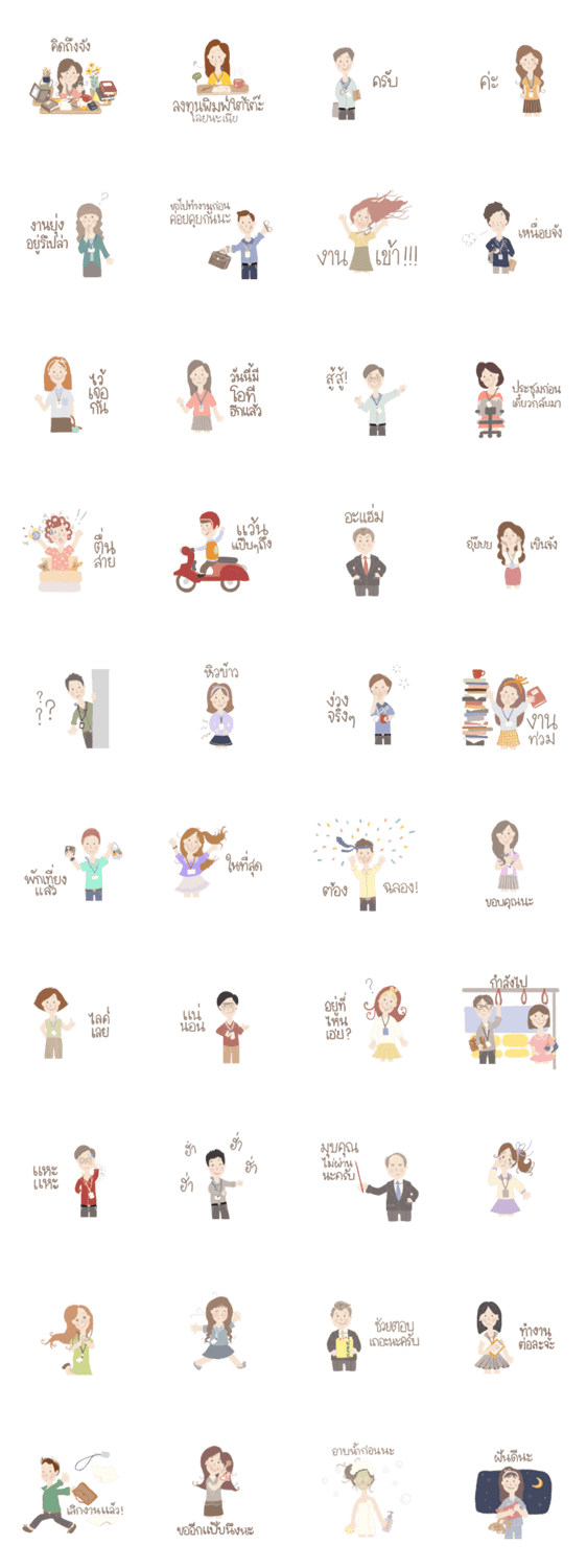 | スタンプ説明 | The Office Pals (as widely known as "Manoot Ngoen-duean", or Thai for "salary men") have clocked in- not at their workplaces- but straight into your chatbox! |