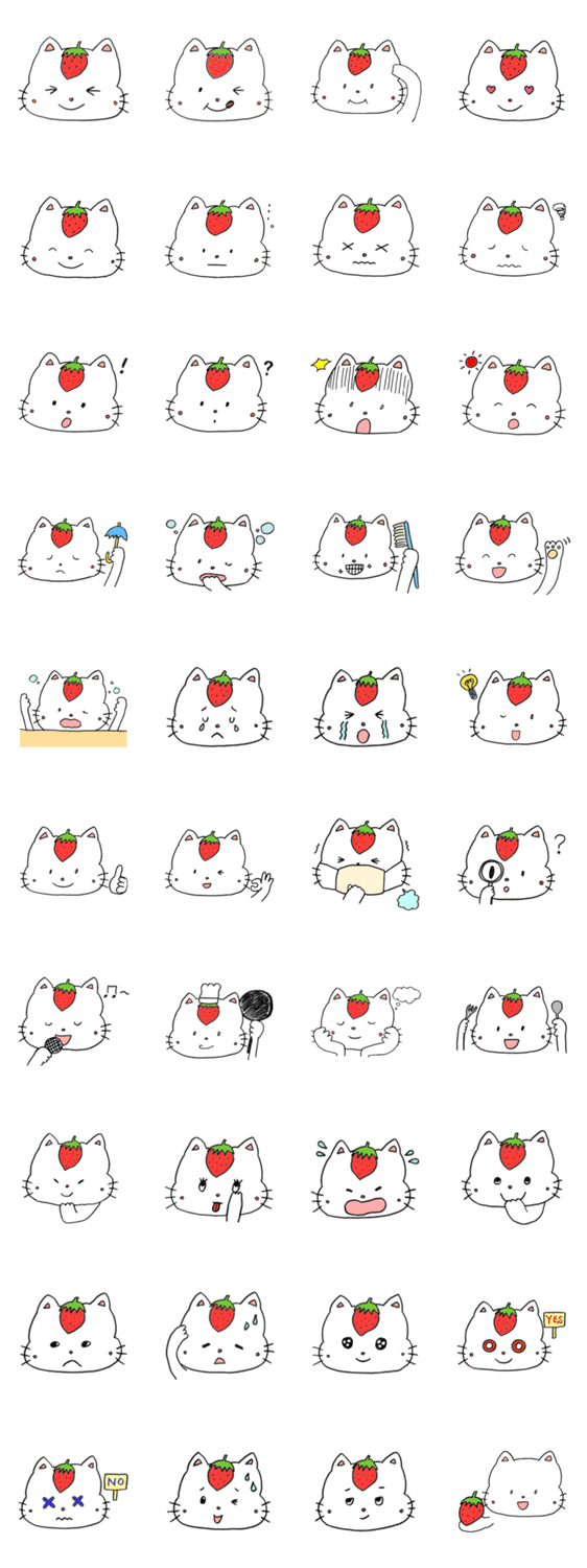 いちごを頭にのせたかわいいキャラクター。いろんな表情で気持ちを伝えよう。
