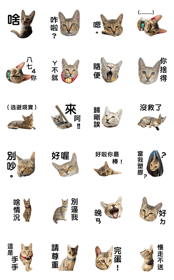 白ネコのあいうえお・・・ってるスタンプ