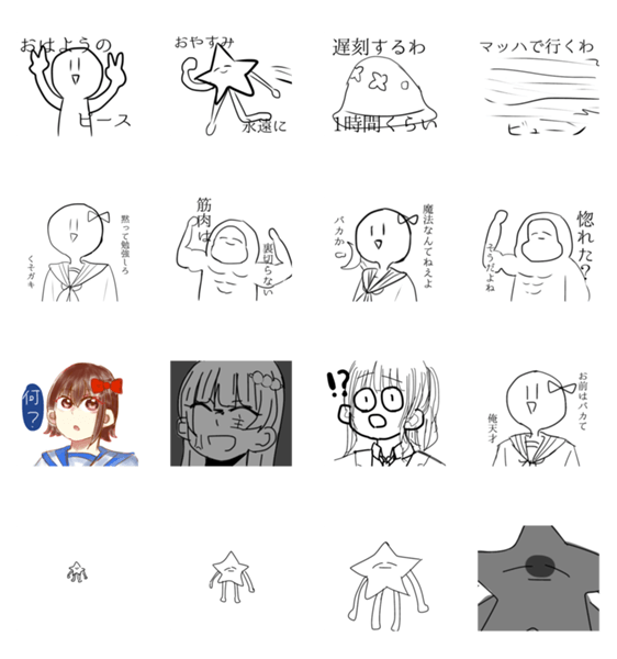 愉快な謎の生物のスタンプです。自分の友達モチーフ。