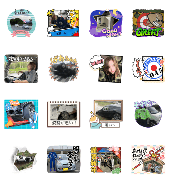 スタンプ説明 車、サーキットのスタンプです