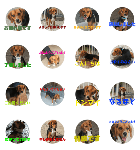 実写のビーグル犬スタンプ。ビジネス用。日常用。あいさつ。丁寧。敬語。使いやすい。定番。シンプル。