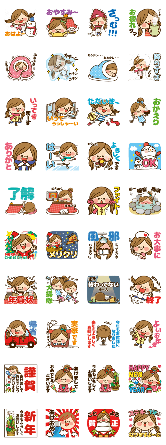 かわいい主婦の1日第15弾【冬編】はかわいい女の子の冬に使えるスタンプです。さっむ〜などの冬定番にクリスマスやお正月に使えるスタンプもセットにしました!