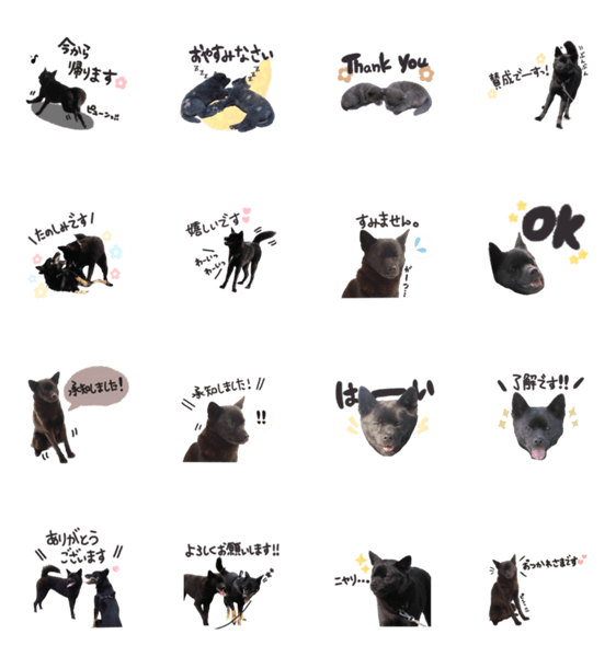 黒い犬たちがお届けする、シンプルで使いやすいスタンプです。