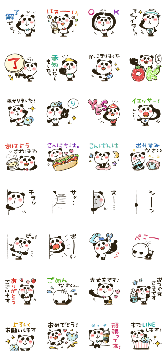 絵文字で活躍しているパンダさんのスタンプバージョンです!了解多めのあいさつ日常で毎日使える。シンプル/敬語