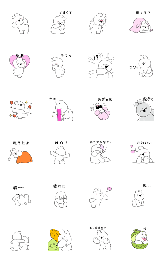 友だち・家族・会社の同僚に!あざとかわいいちびウサギの相手を選ばず使える日常で使いやすい感情を、ユーモアたっぷりに詰め込みました♪