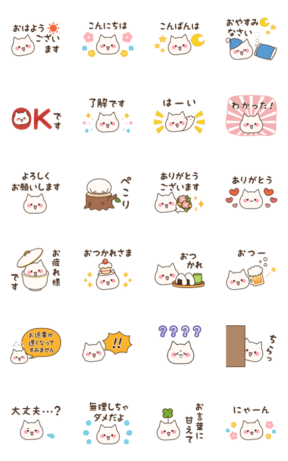 どんな相手でも幅広く使える白猫の顔のアニメーションスタンプです。
