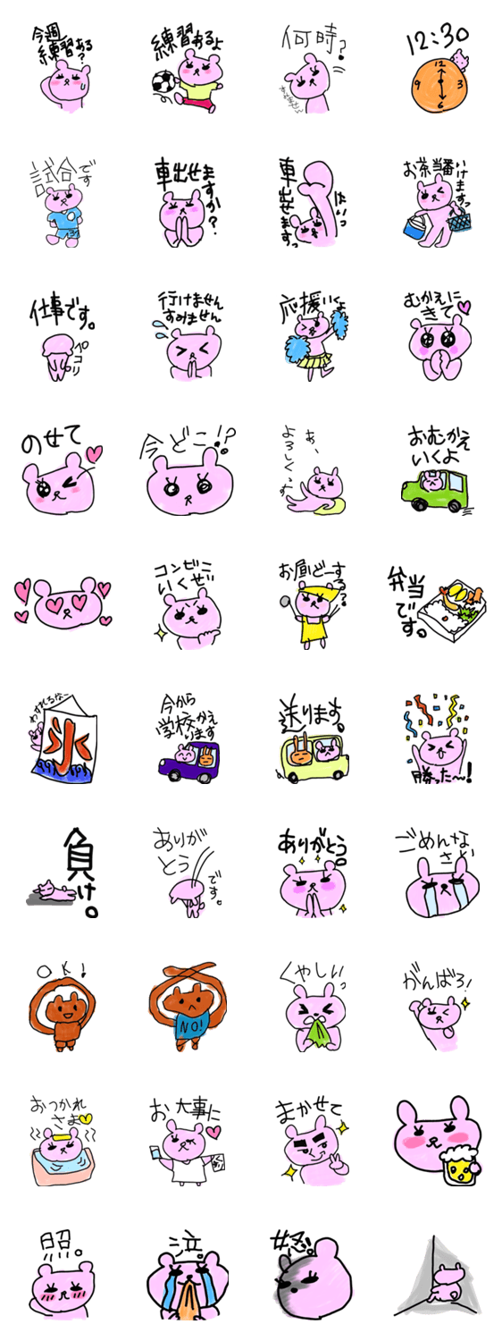 子供がサッカー、野球、バスケ、テニス等クラブチームに通うママやパパが使えるスタンプです