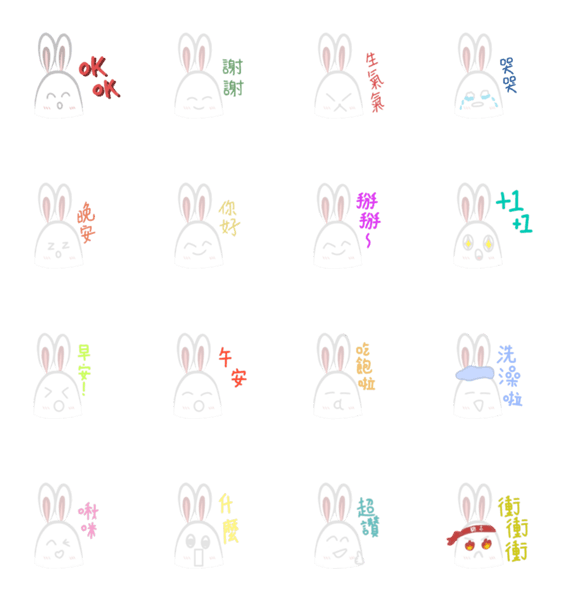 白ネコのあいうえお・・・ってるスタンプ