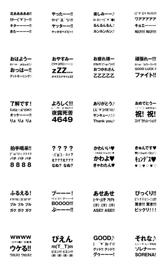 | スタンプ説明 | 顔文字/絵文字/文字が流れる/お祝い/盛り上がる/ハッピー/テンションMAX/気持ち/動く/使いやすい/毎日使える/挨拶/あいさつ/煽り/面白い/かわいい/シンプル/大人女子 |