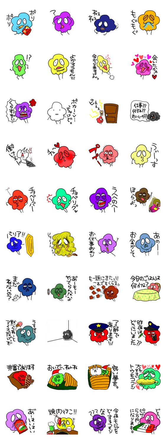謎の生物モジャ1~7、モジャとらくがきにゃんこから、人気のスタンプを集めた、究極のモジャBESTが完成★新作もちょっとあります!