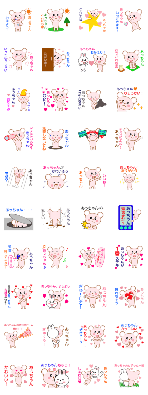 「あっちゃん」に送信するため用スタンプ!「あっちゃん」に送信する際に使うことで、あっちゃんに喜ばれ、より自分の想いをより伝えられること間違いなし!