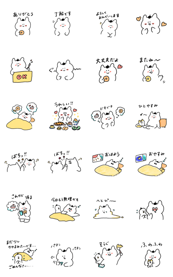 白ネコのあいうえお・・・ってるスタンプ