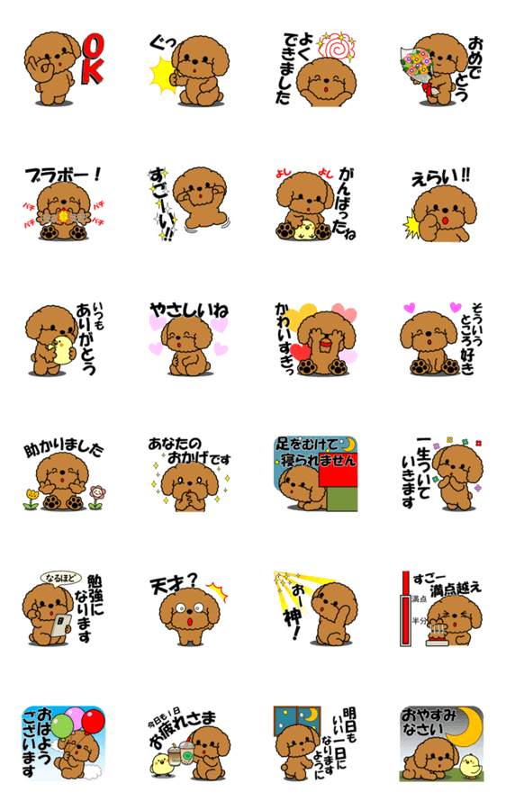 動く!トイプー「ほめ言葉」 -LINEスタンプマニア