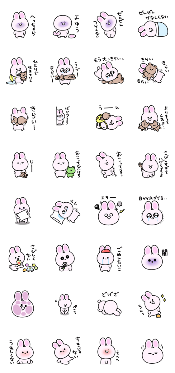 あまのじゃく♡シュールなミニうさぎのスタンプです。