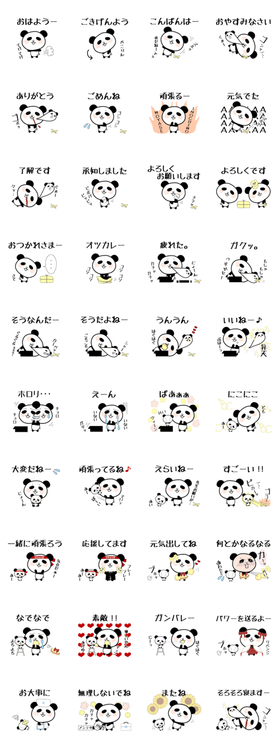 ぱんだと子パンダ(仮)が繰り広げる、シュールでちょっぴり可愛いスタンプの物語です。