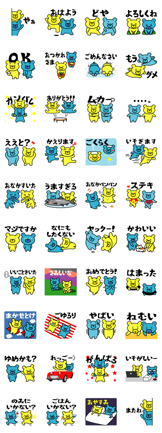 | スタンプ説明 | 色のついたクマ2がアナタの気持ちを代弁します!捨てゴマなしでバンバン使えます!…たぶん |