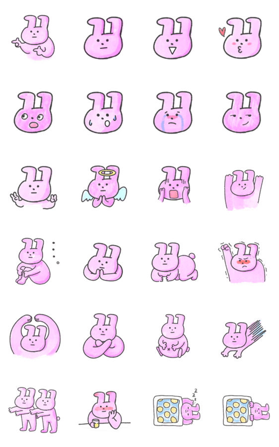 かわいいピンクのうさぎスタンプ、無口なうさぎ。