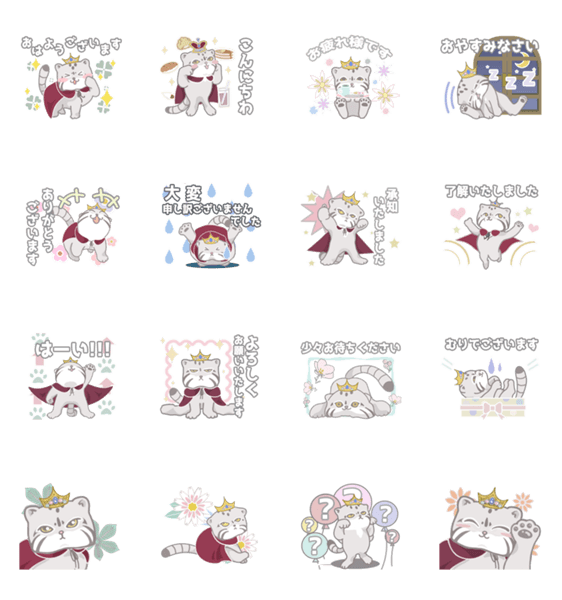 マヌルネコの王子様第四弾。 名前はマル王子です。動くラインスタンプで敬語をメインとしておりますが日常でも使いやすく仕上げました。 どうぞよろしくお願いいたします。