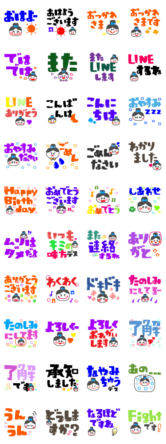 ▶(デカ文字)お団子ヘアの挨拶スタンプ◀ -LINEスタンプマニア