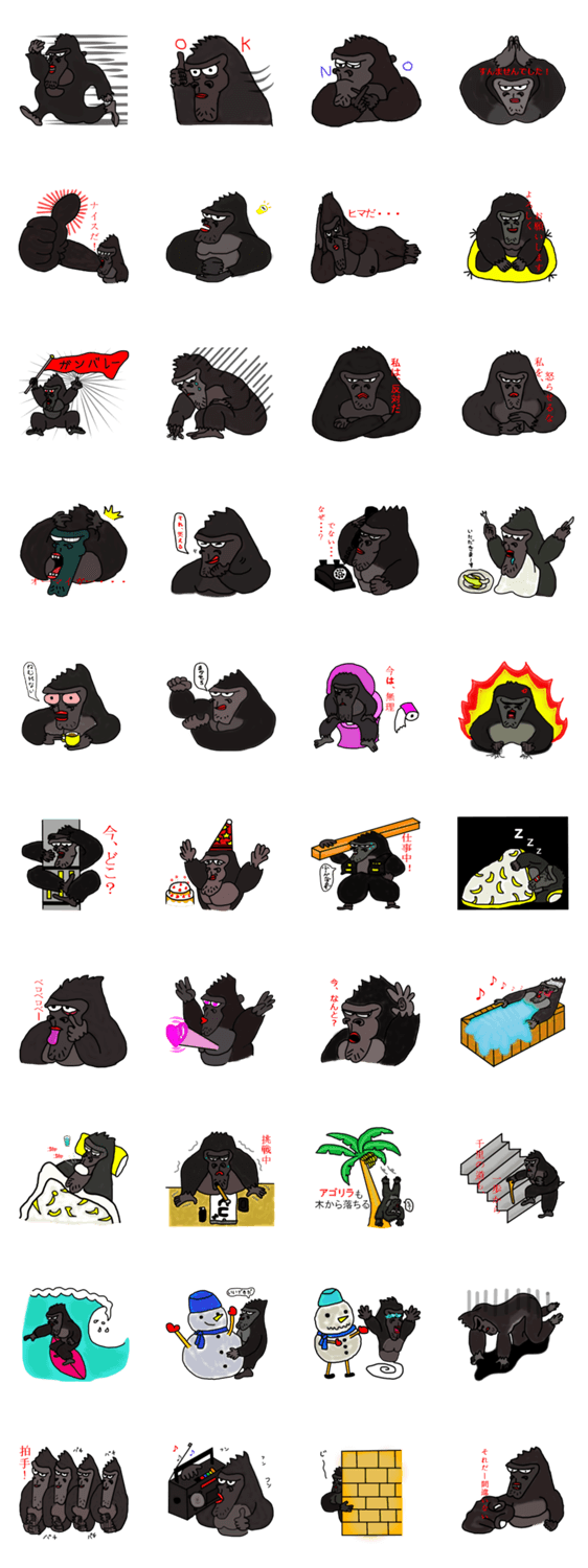 ゴリラの中でもアゴのでた愉快なアゴリラのスタンプです。