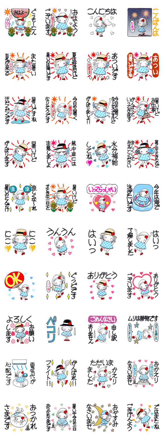 いつも暇をもてあましてるひま子ちゃんの今回は、大人女子の今年も暑い夏が来るスタンプです。よろしくお願いします!
