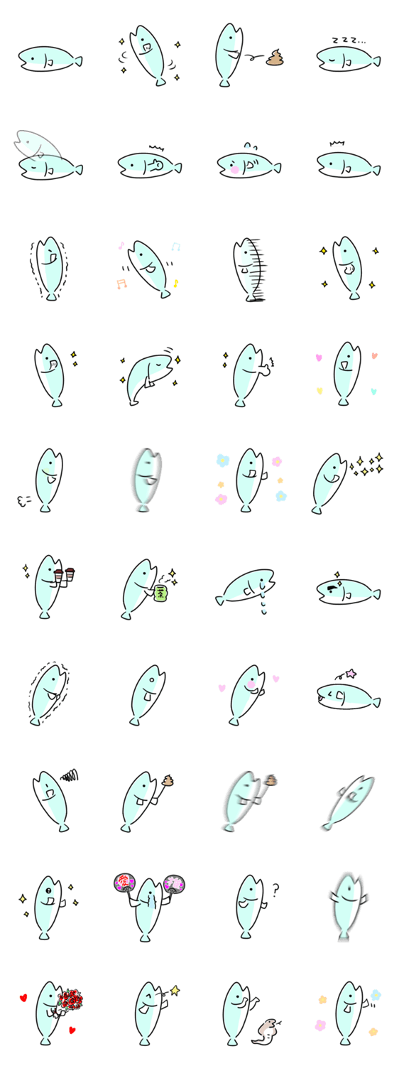 サカナのシンプルで使いやすいスタンプです。[ゆるかわ 可愛い 動物 魚 シュール]