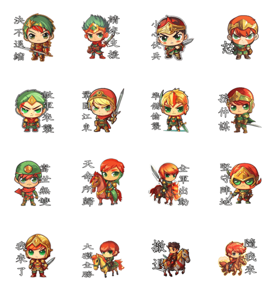 三国志スタンプは、中国の歴史の三国時代を舞台にした絵文字スタンプシリーズです。