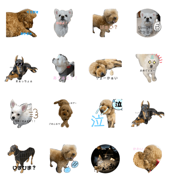 | スタンプ説明 | LINEスタンプメーカーで作った、ニコ(トイプードル)とエル(マルチワワ)とベリー(ドーベルマン)の日常的に使えそうなスタンプです⭐︎ |