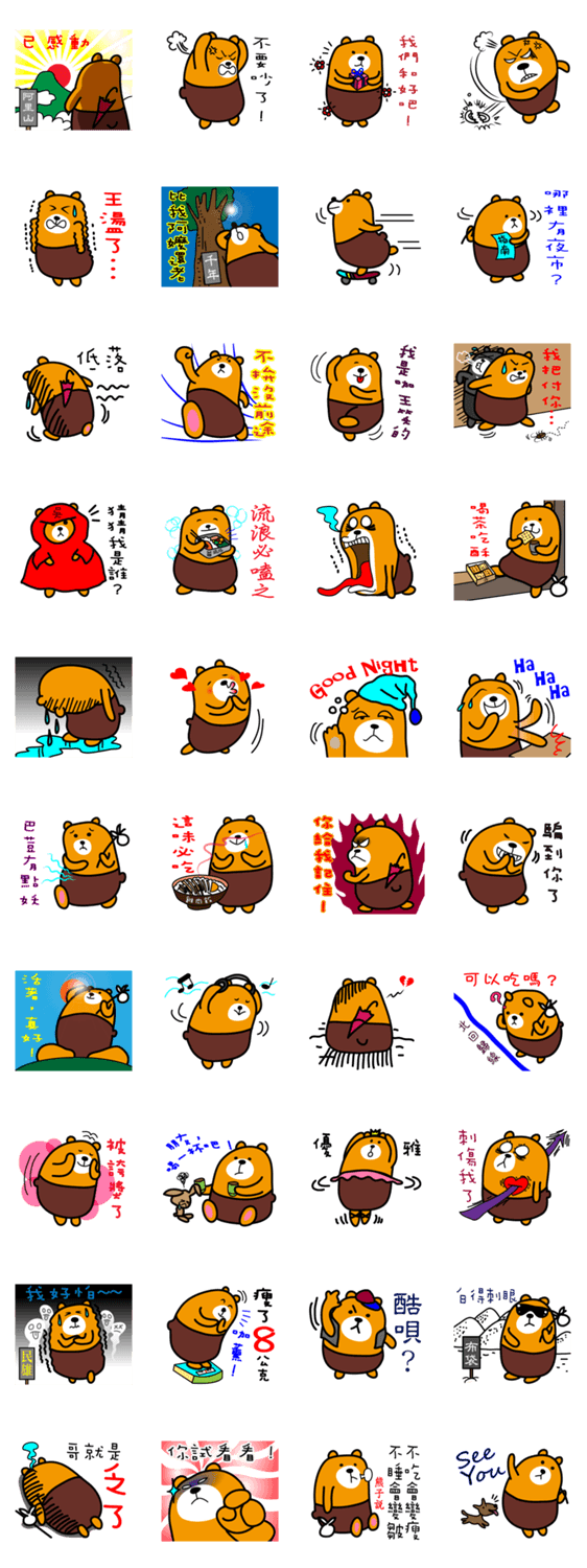 | スタンプ説明 | Liu-Lang Bear has a wandering soul, starting his journey.When he comes to knock your door, please give him a cup of honey milk tea as well. Here he goes! |