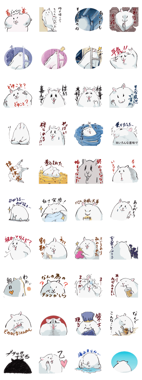 | スタンプ説明 | ボディは白いけど心が真っ黒に染められたハムスターがやってまいりました。 |