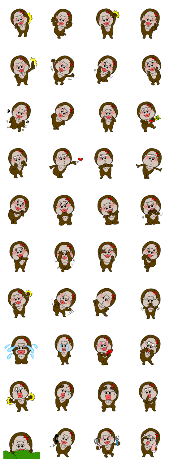 リアクションで伝える可愛い 毎日使える女の子ゴリラのスタンプです。