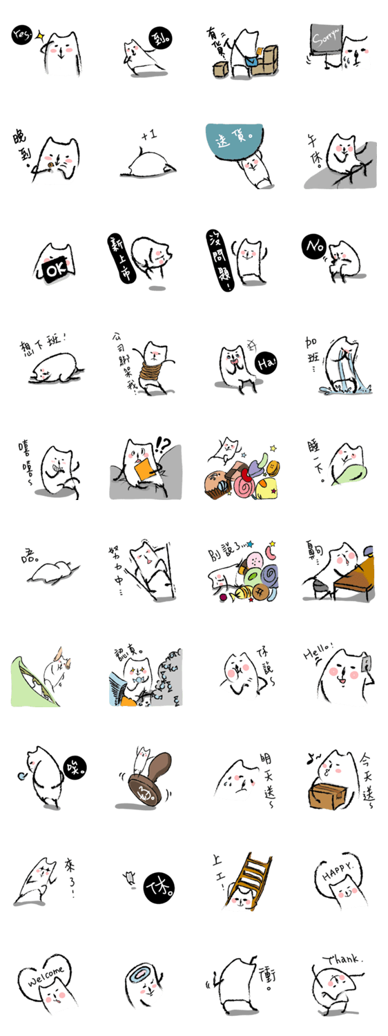 白ネコのあいうえお・・・ってるスタンプ