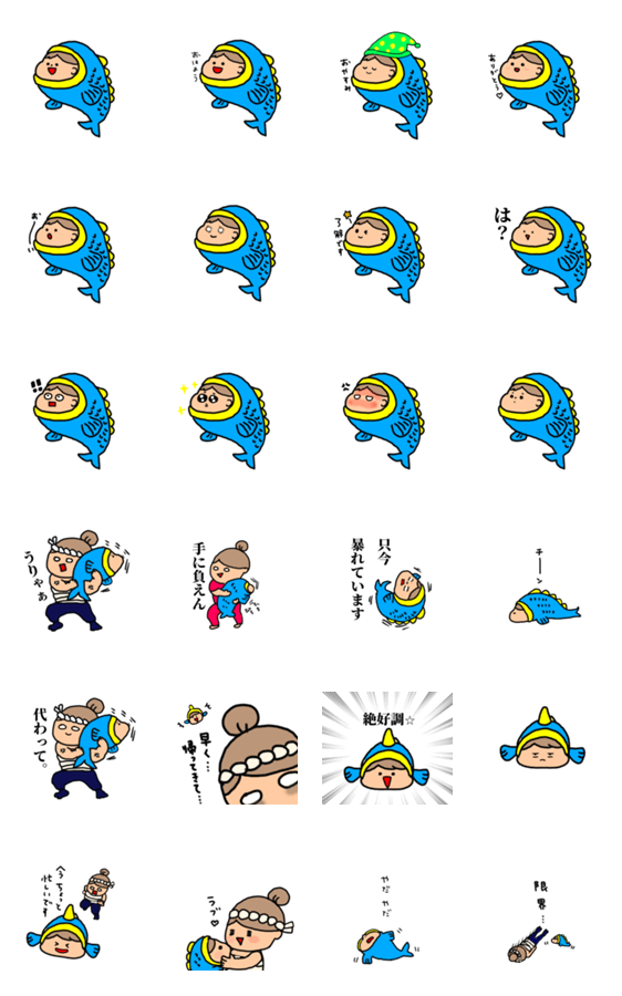 一歳半、鮮魚のように暴れまわる子供を抱えるママたちへ。鮮魚ちゃんスタンプ、できました!