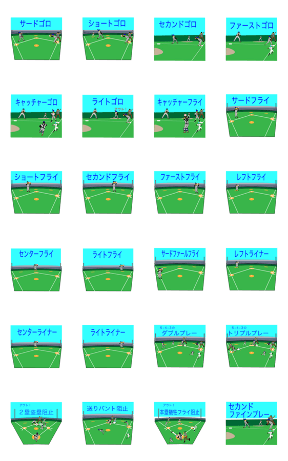さむらい小僧が野球を楽しむ。守備側から見た場面(アウト)の野球の面白さを見て下さい。ファイルサイズの制限から関連するポジションの選手のみ表示。