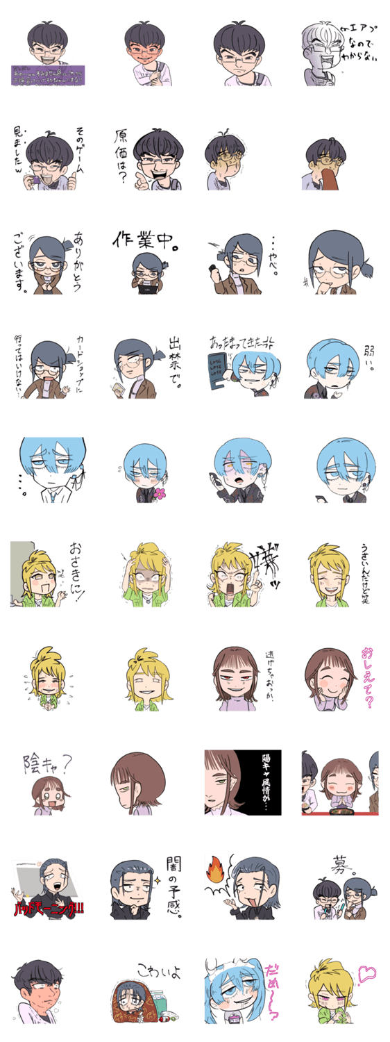恋愛風ノベルゲーム「陰キャラブコメ(陰ラブ)」のスタンプです。