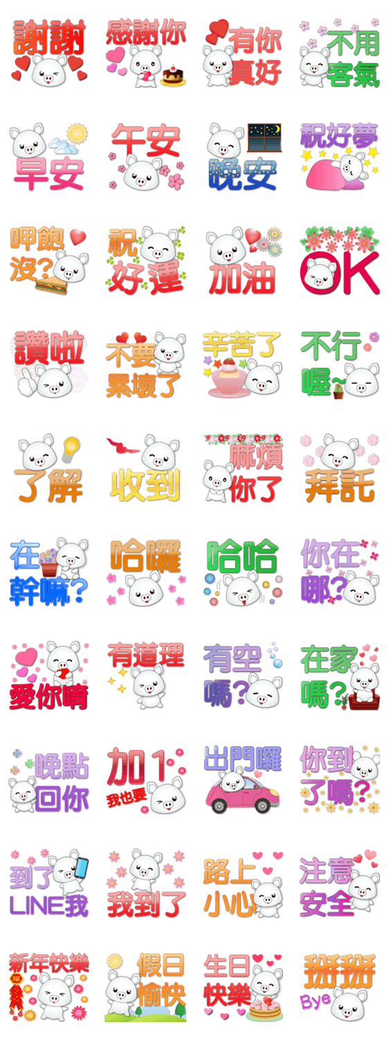 スタンプ説明 かわいい白豚 - 超実践フレーズ