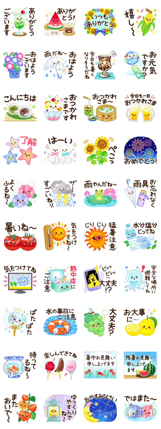 ず~っと使える夏のかわいい日常デカ文字♡暑さ/熱中症/梅雨/台風etc家族への連絡に♡夏休み、暑中見舞い/残暑お見舞い、お盆帰省時、海水浴にも♪お父さん(父の日)あり♡