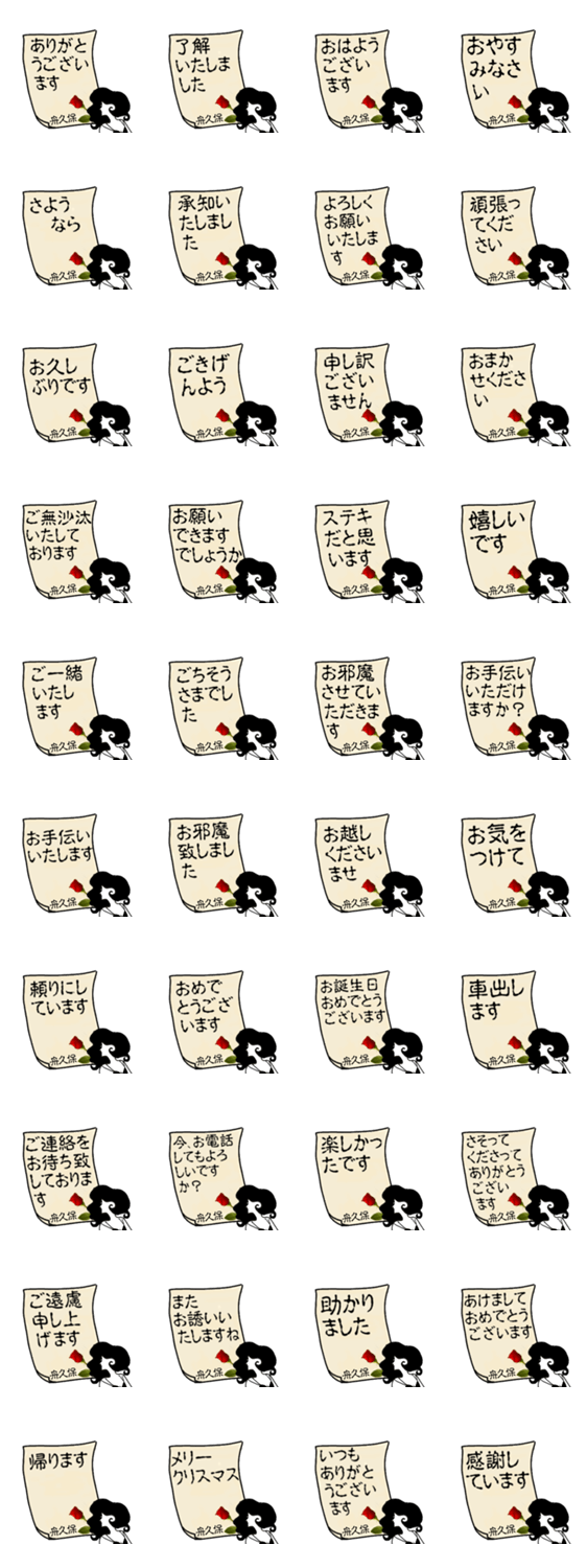 敬語スタンプ 承知いたしました おまかせください おめでとうございます 感謝しています ごきげんよう 帰ります ご無沙汰いたしております ミステリアスなスタンプ