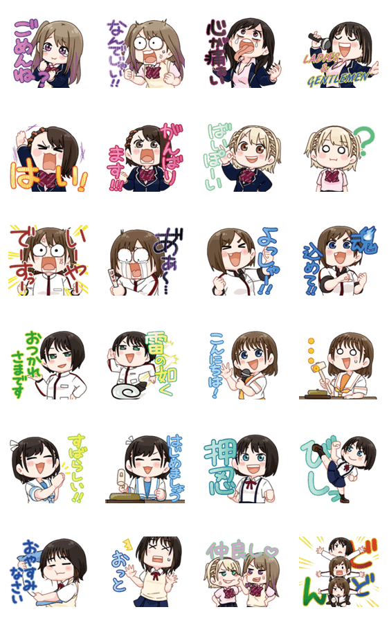 | スタンプ説明 | 輝く女子プロレス、スターダムの選手たちが通う女子校――月刊ブシロードにて連載中の『輝け!! スターダム女子校』公式LINEスタンプ第2弾。コズエン&GE他バージョンです。 |