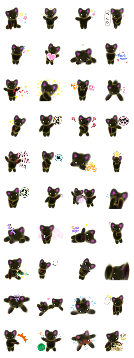 LINEスタンプメーカーでつくった黒ねこのスタンプです。