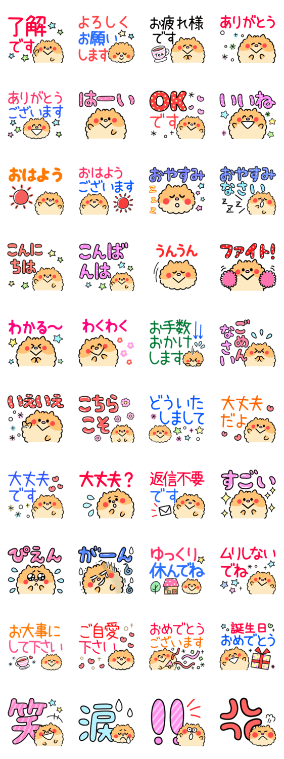 毎日使える便利なスタンプです。使いやすい/日常会話/犬/ポメラニアン/もふもふ/かわいい/癒し/動物/敬語/丁寧