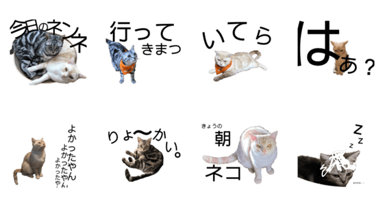 白ネコのあいうえお・・・ってるスタンプ