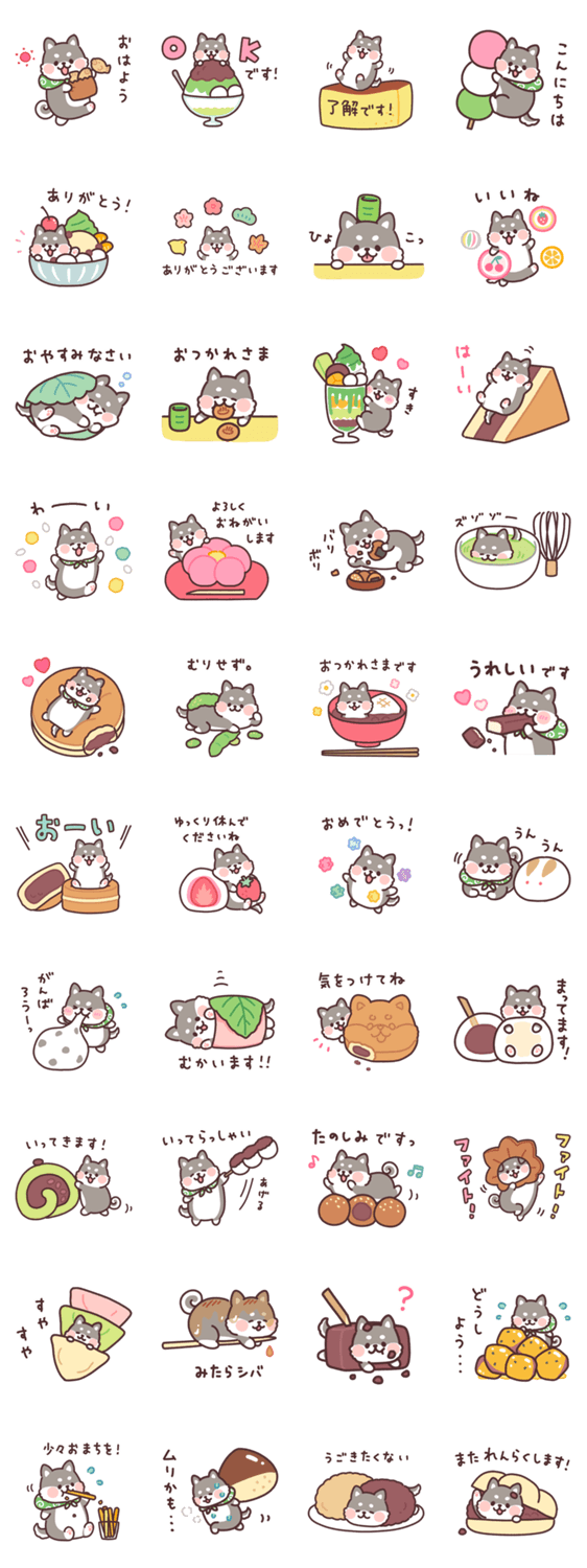 ころころ柴犬 和菓子と黒柴 -LINEスタンプマニア