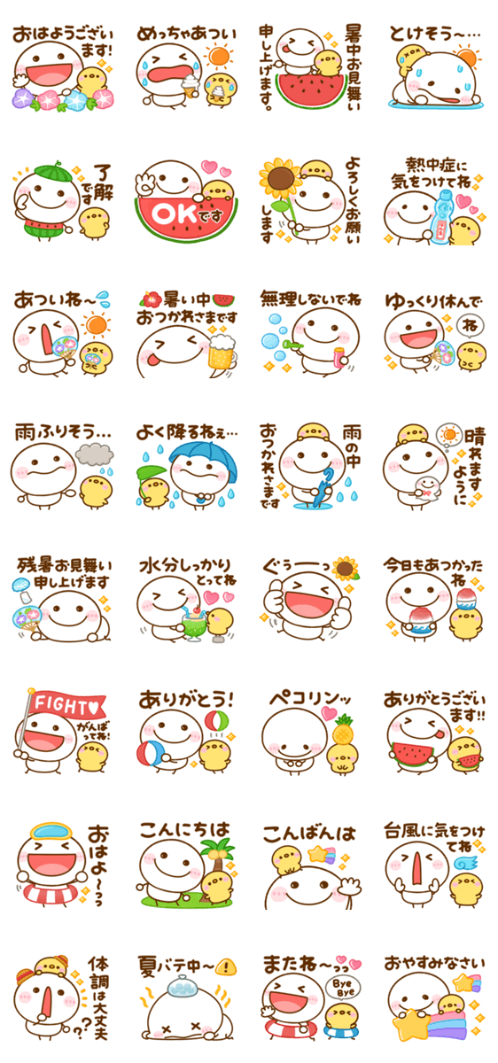 暑い夏に♪相手を思いやる言葉が詰まった棒人間のちびマロのスタンプです。