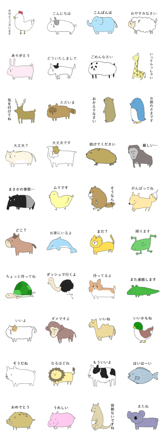 ゆるい動物たちと毎日の会話に無難に使えるスタンプです。うさぎやねこに犬にパンダ…‼あなたはどの子を使う?