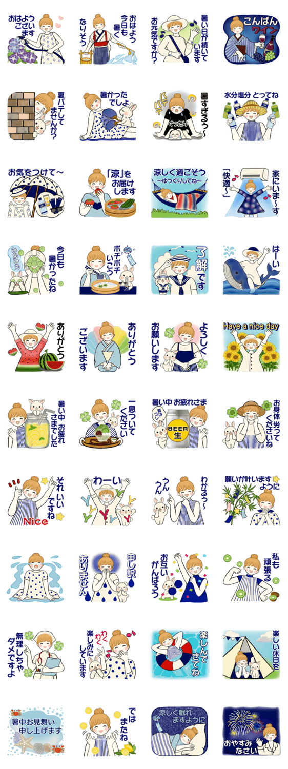 「お団子ガール時々うさぴょんと 6」の改訂版です。内容も文字も見やすく、使いやすく変更しました。色合いもより涼しげになりました。夏/日常/挨拶/気遣い/敬語入り